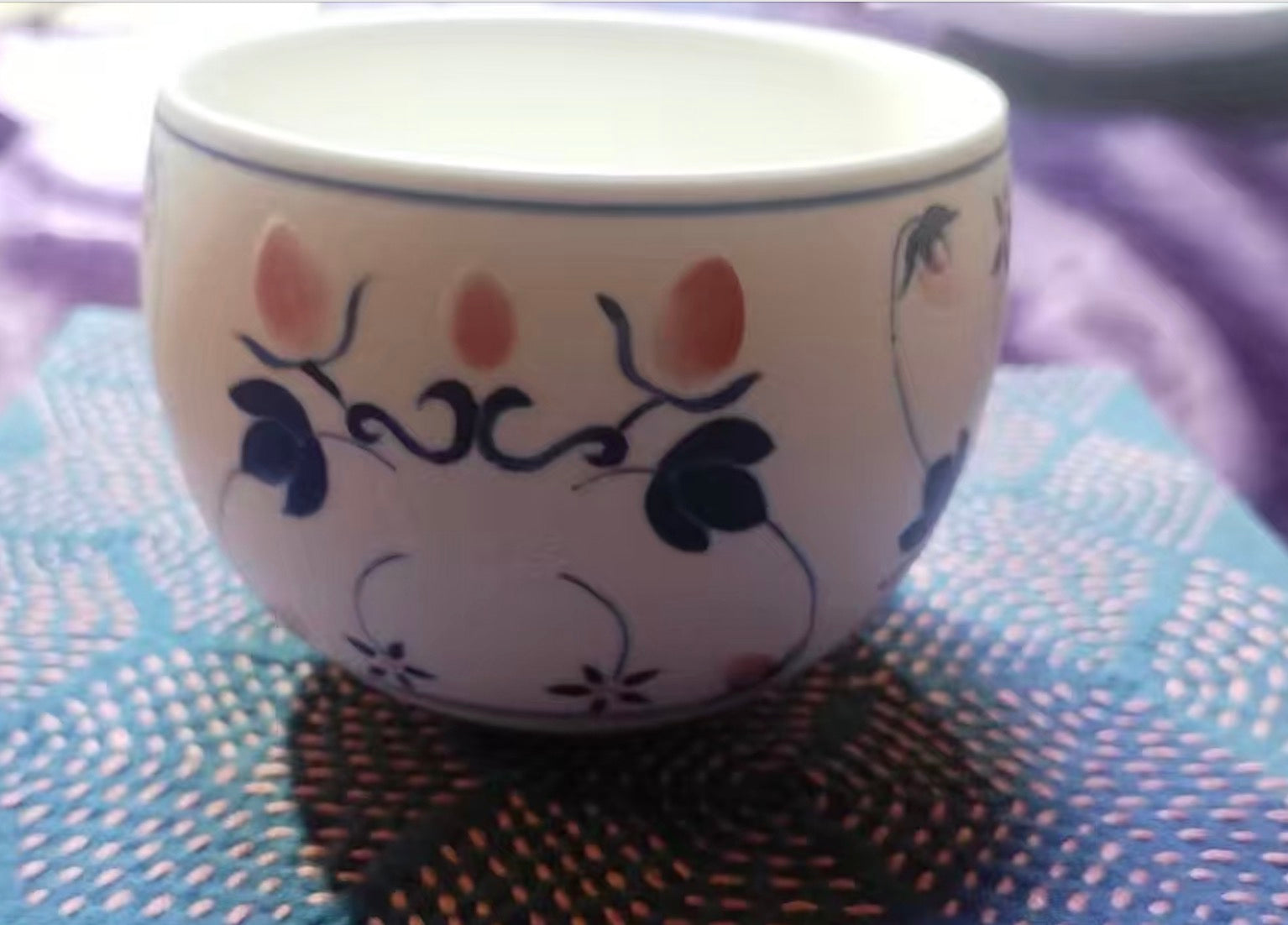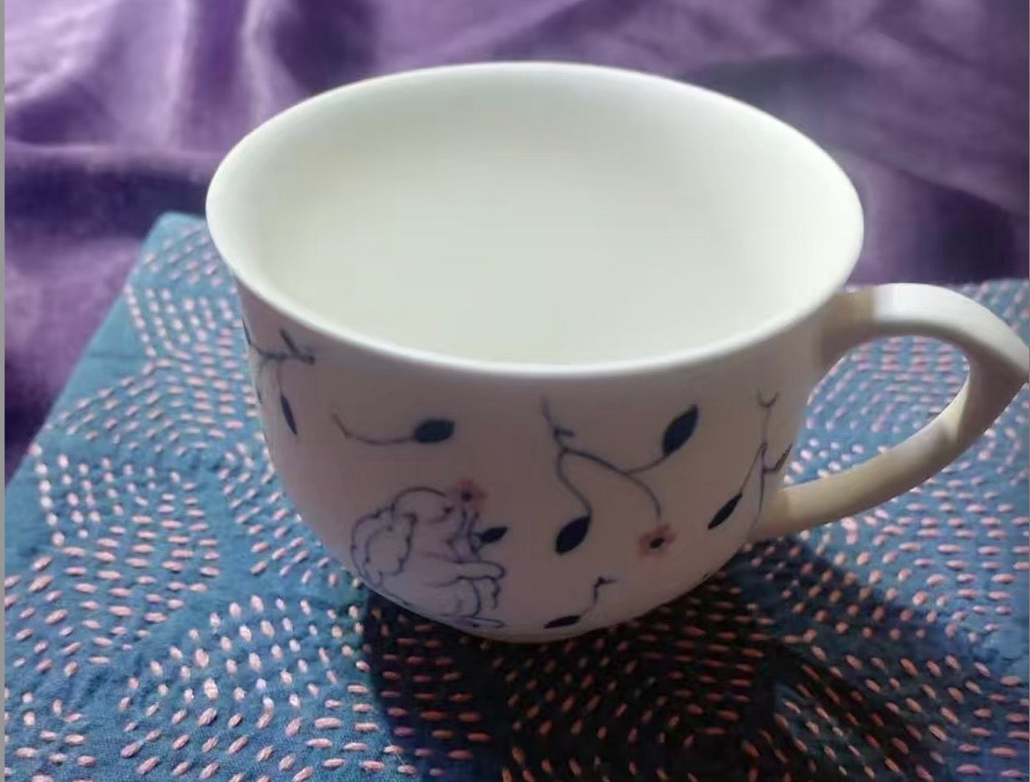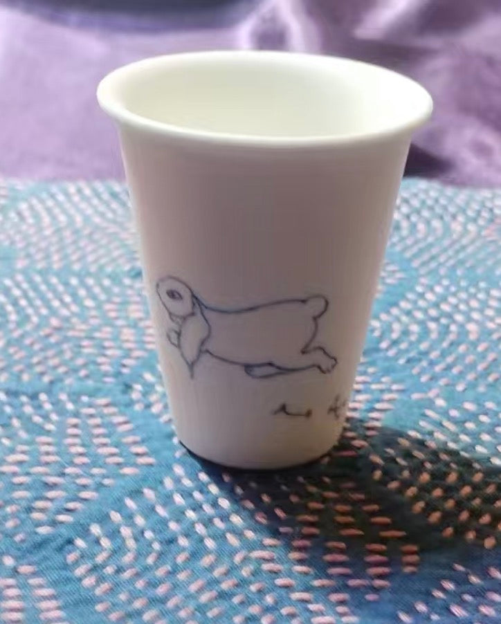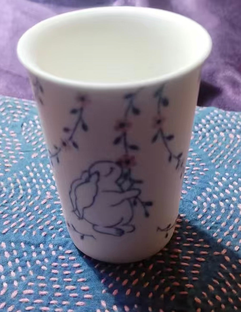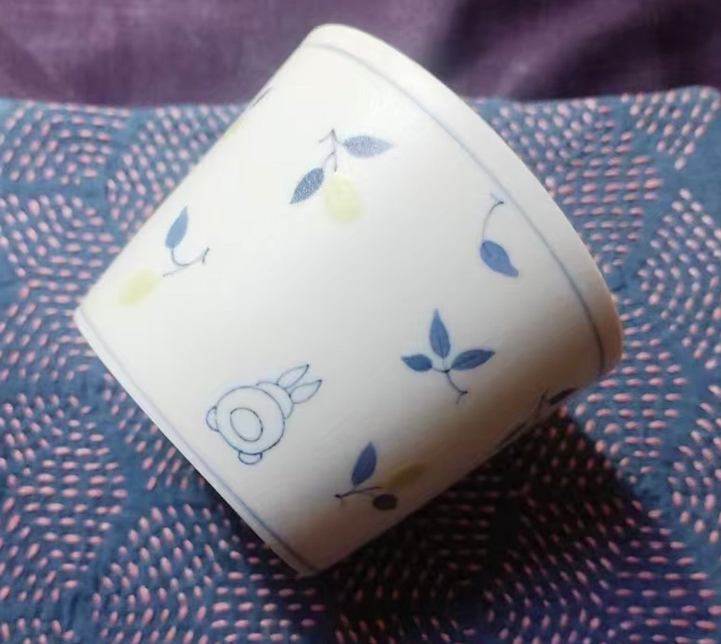 Handmade ceramic tea cup with shadow green and shorebreak glazing 250ml