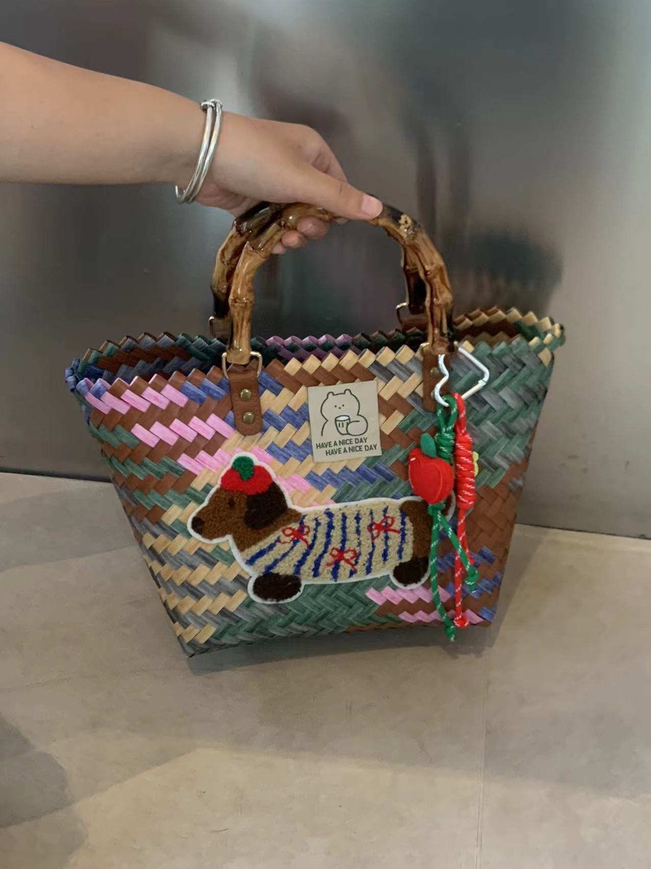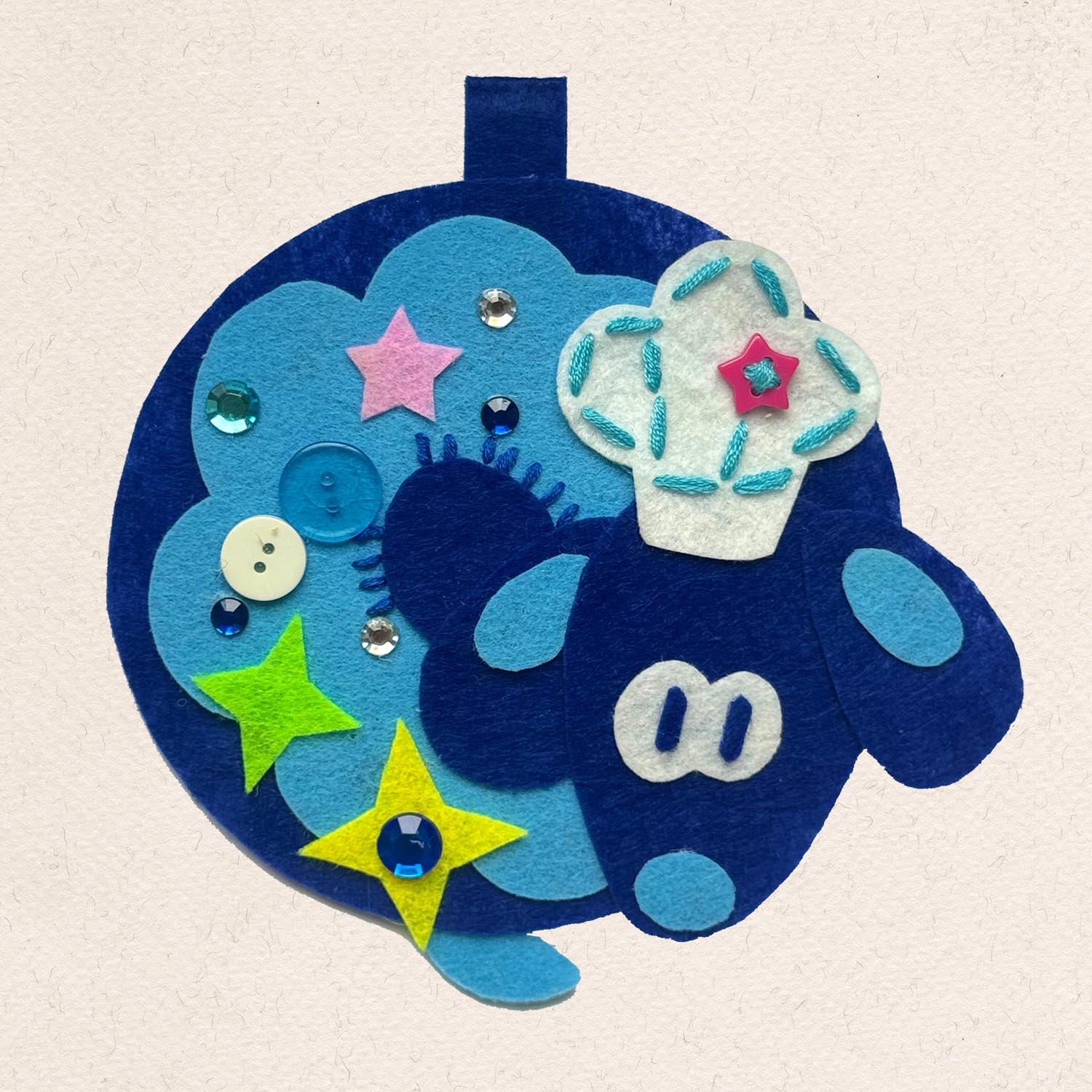 Donut Dog – Handmade Felt Card Holder (with Star Charm & Floral Strap)