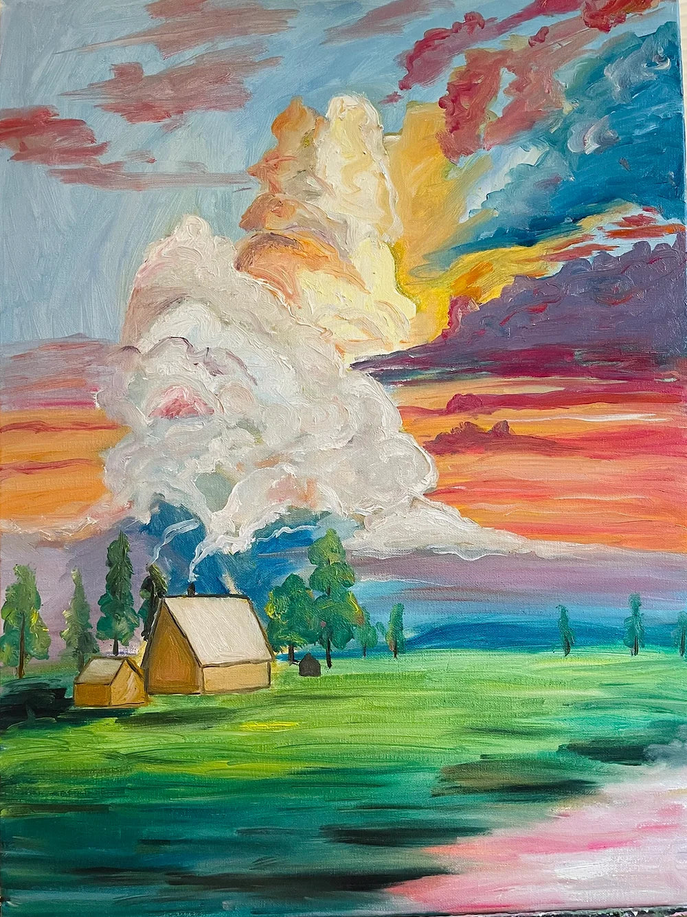 The first light in the forest, 24x30 inch acrylic painting