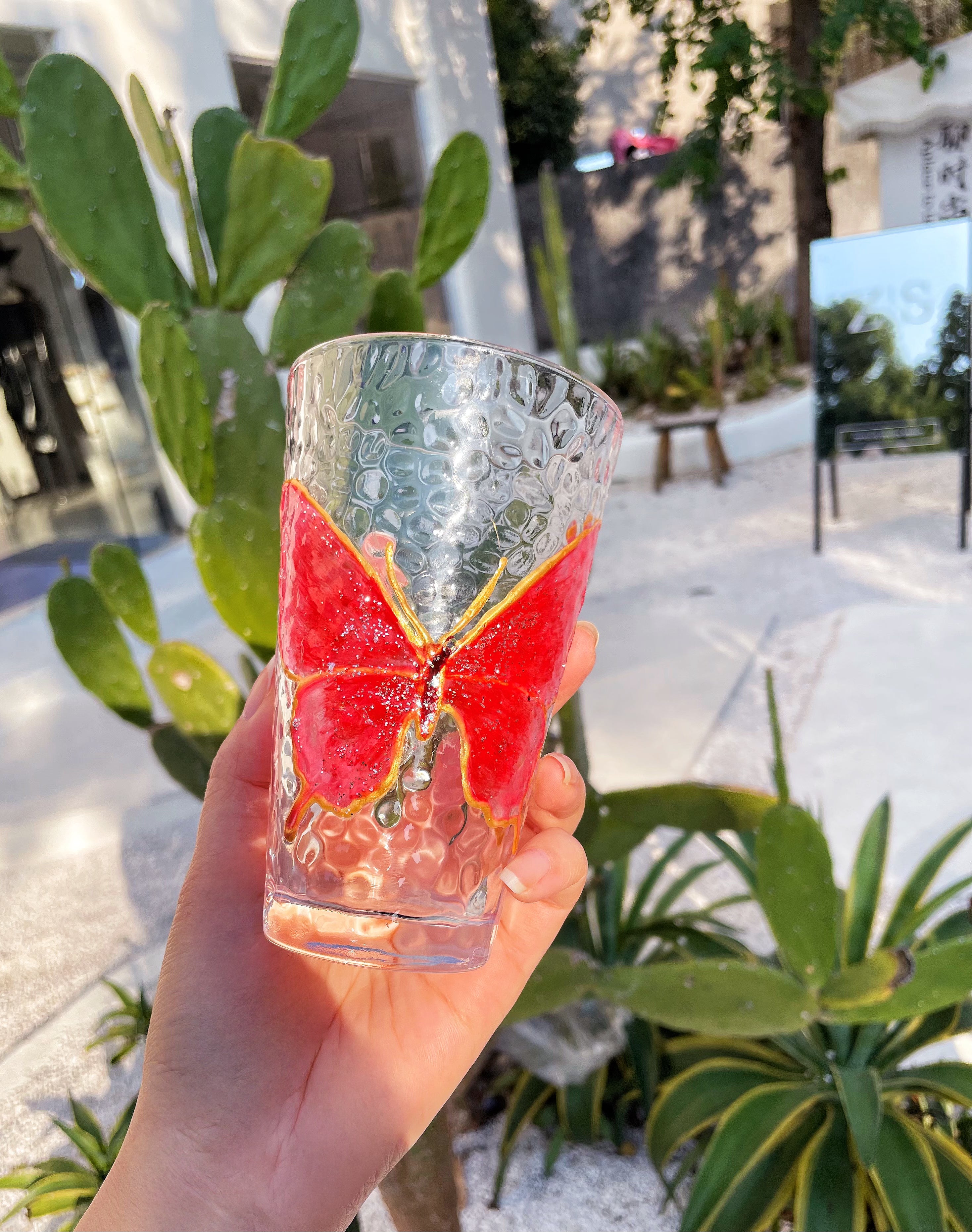 Hand-Painted Butterfly Glass