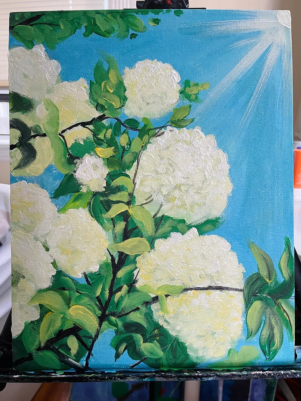 White Hydrangea, 18x24 inch acrylic painting